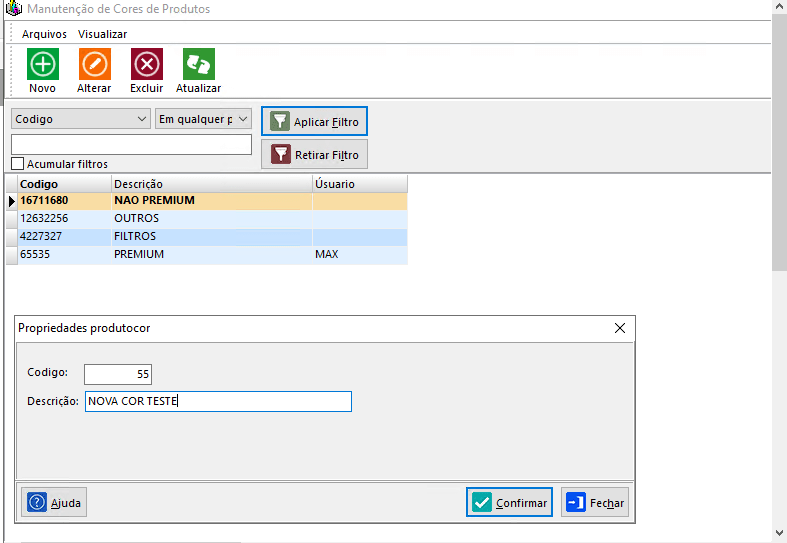 Diversas tabelas são mantidas por essa modelo de tela no Orion que seguem a organização de sempre. Apresenta os registros em linha e disponibiliza as operações básicas de Inclusão, Alteração e Exclusão.
